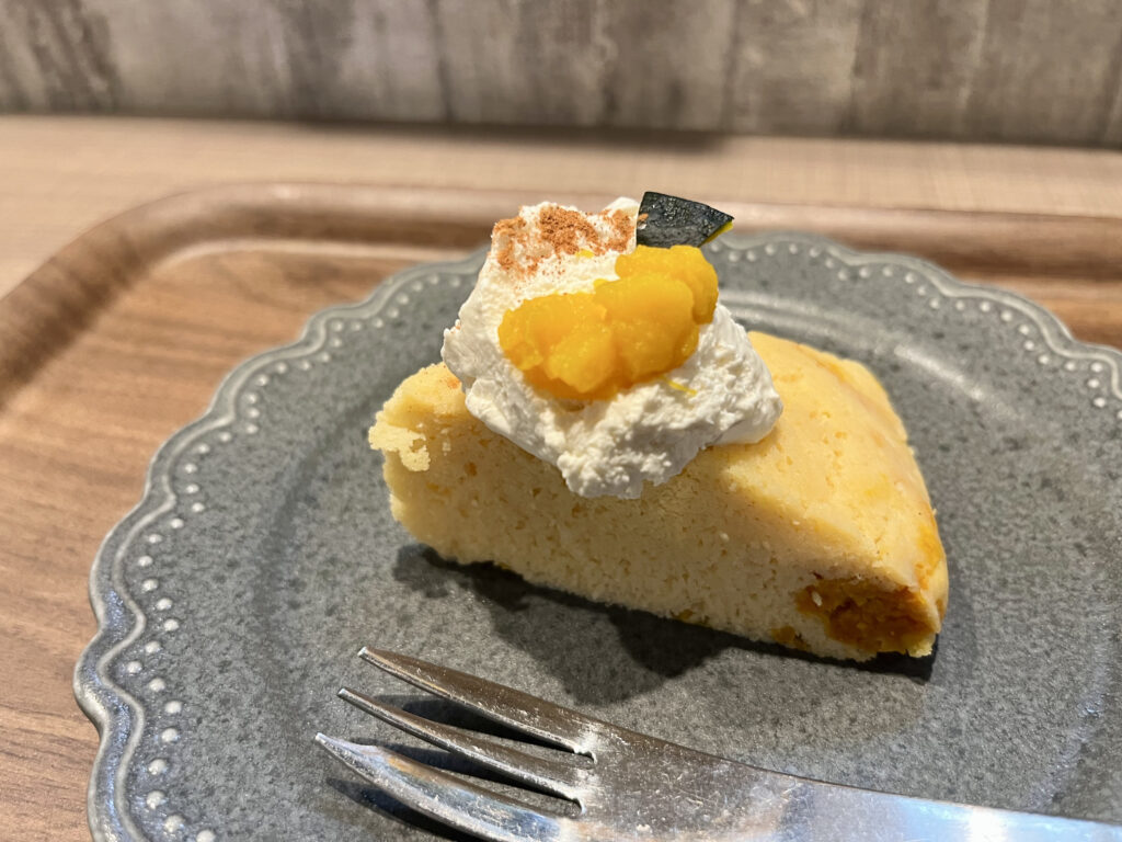 食後には、グルテンフリーケーキのかぼちゃをいただきました。こちらはサラダボウルとセットでプラス330円(税込)でいただくことができます。
