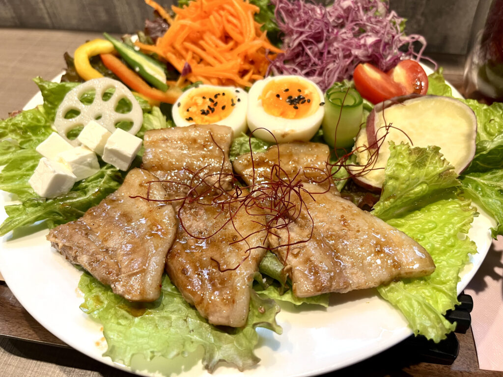 自家製の黒ごまドレッシングをかけて食べるのですが、これが絶品で野菜ともお肉とも相性が抜群でした。