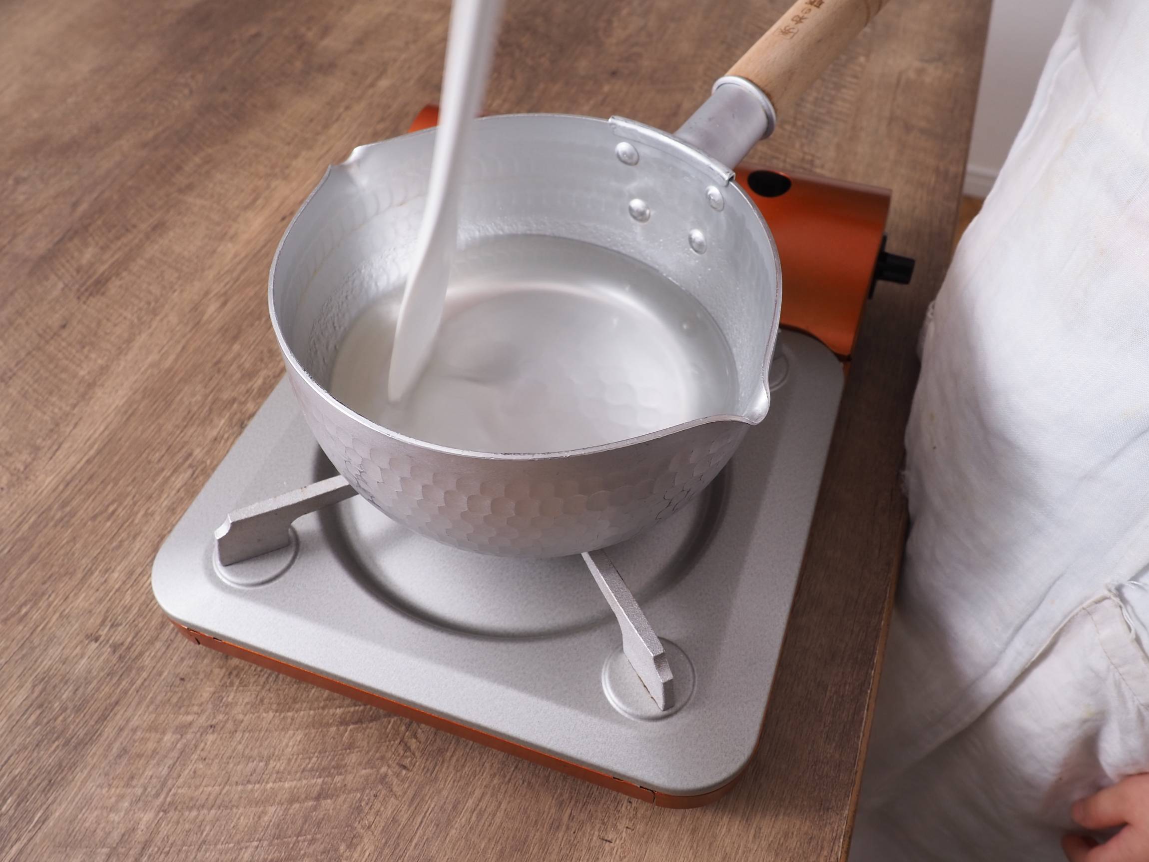 水(300g)の入った鍋に、1を入れてよく混ぜます。