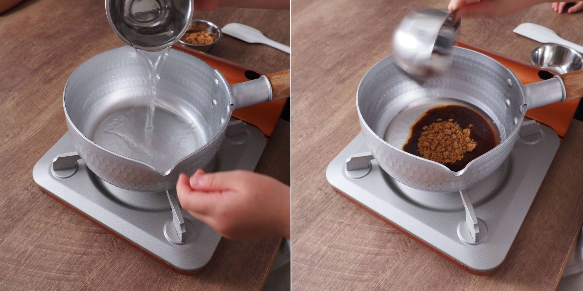 鍋に黒みつ用の水(50g)と黒砂糖を入れます。