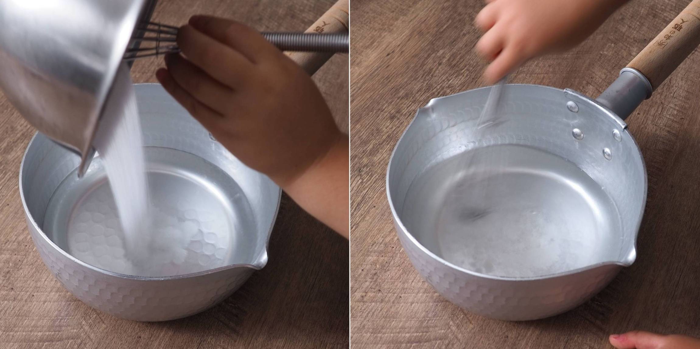 アガーとグラニュー糖は、あらかじめしっかり混ぜてダマを防ぎましょう。
