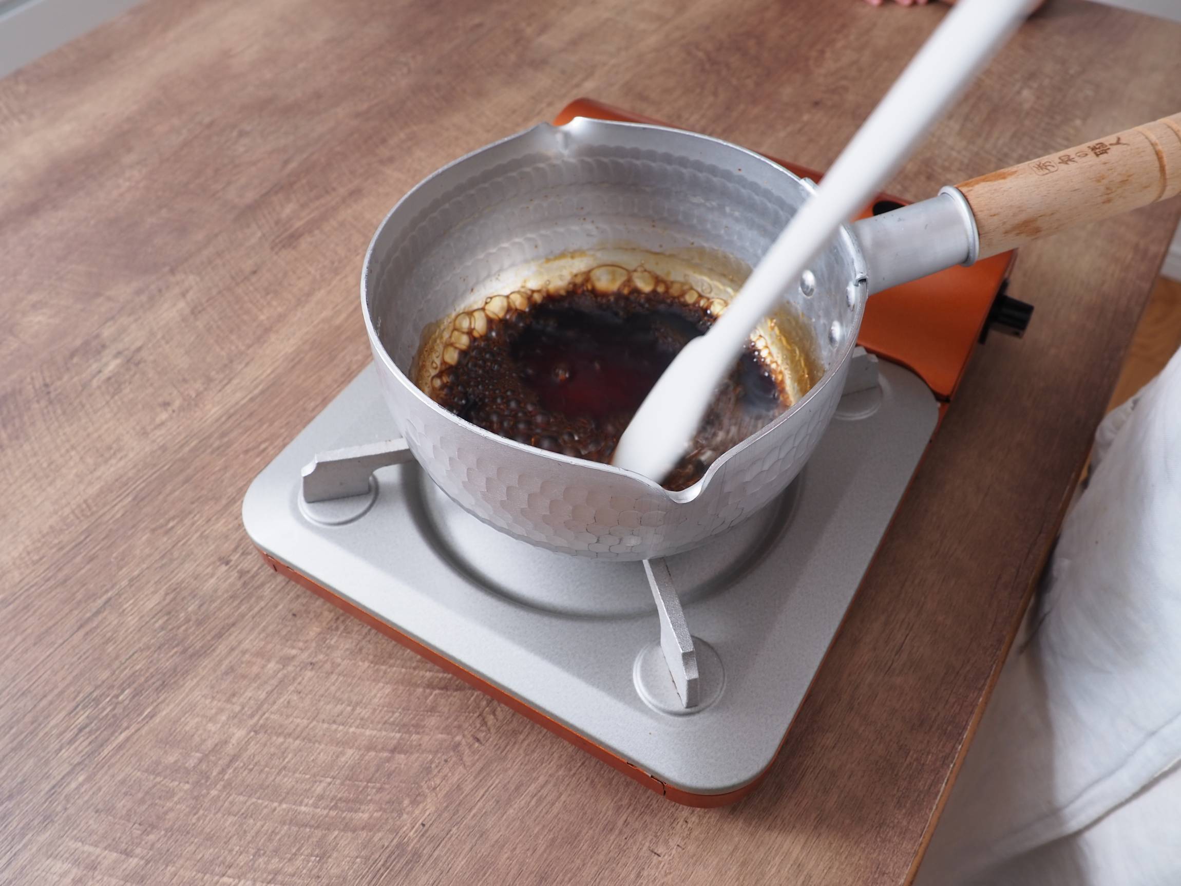 黒みつは冷めるととろみが増すため、思っているより少し手前で火を止めるとちょうどよい濃さになります。