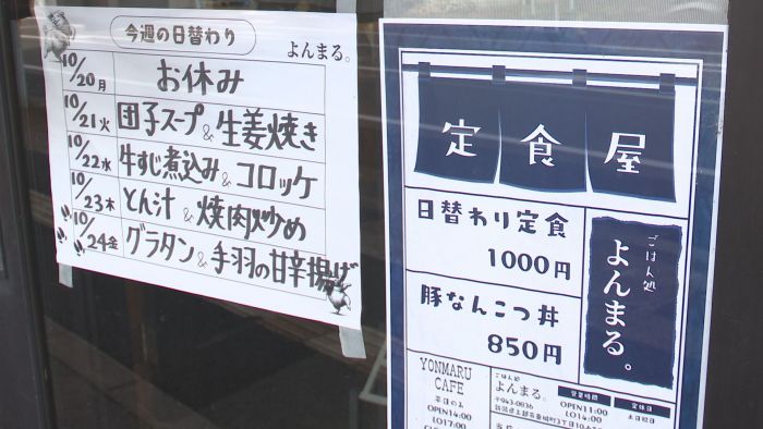 上越市東城町3丁目に、トロトロ食感の豚なんこつを名物メニューに、日替わり定食を提供する「ごはん処 よんまる。」が10月1日に移転オープンしました。