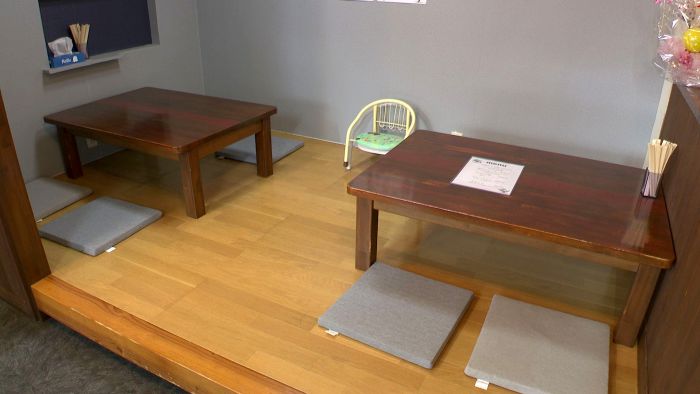 カウンター4席、テーブルの2人席が2つ、3人席が1つ、小さな子ども連れでも安心して利用できる小上がりには4人席が2つあります。