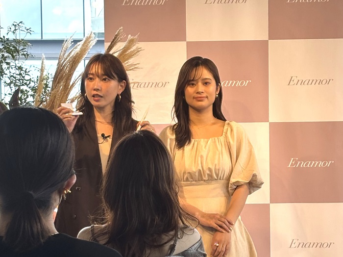 発表会の最後に、かじえりさんは「近年は韓国コスメや中国コスメの人気が高まる中、Enamorも香港や中国へ進出し、香港ではベストコスメを受賞するなど、少しずつ世界に向けて歩みを進めています。これをきっかけに日本の美容ももっとガンバれるはず!」と語り、日本の美容を世界に誇れる存在へと成長させていきたいと力強くコメントしました。