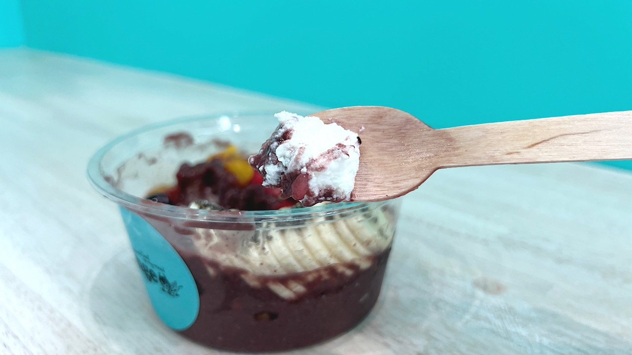 バナナ、マンゴー、ブルーベリーが入っていて、アサイーはあっさりと食べやすい味。