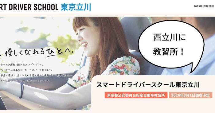 【開店】車離れの時代でも免許証はほしい!?JR青梅線・西立川駅徒歩約5分のところに自動車教習所『スマートドライバースクール東京立川』が2026年3月1日(日)開校するみたい