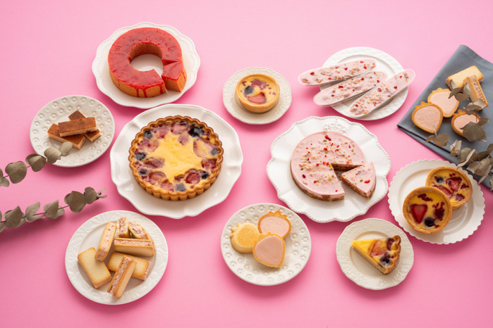 あまおう苺パウダーとラズベリーのフリーズドライが入ったホイップチョコを、芳醇なバターの香るクッキーでサンドした「あまおうバターサンド」をはじめ、フィナンシェやタルトクッキーなど多彩な苺スイーツが楽しめます。