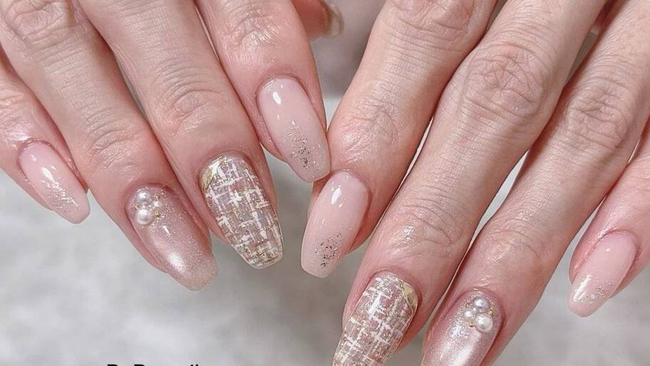 【11月編】おすすめのヌーディーベージュネイル▶︎ワンポイントにツイード柄ネイル