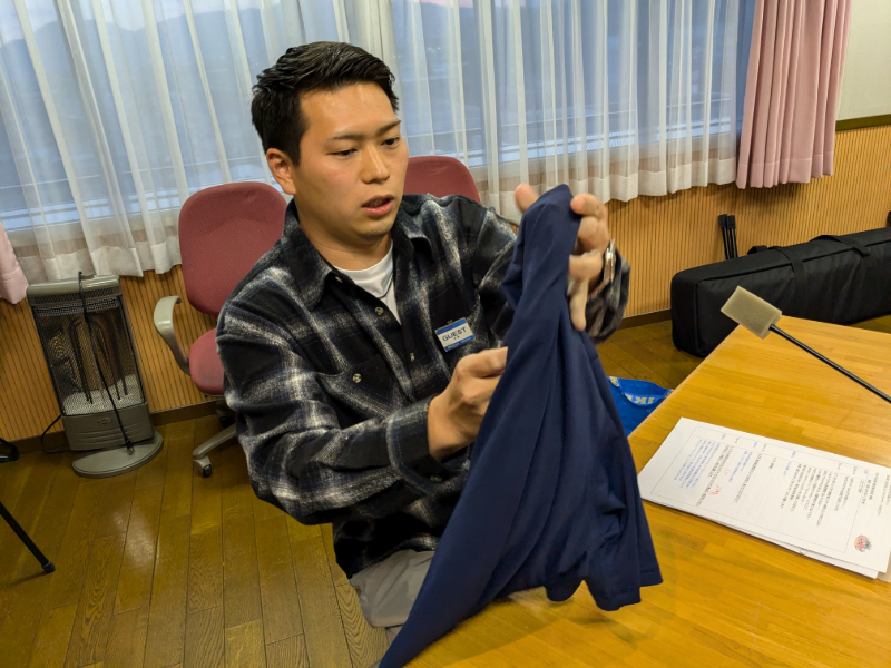 そして、今回ご紹介した商品を赤堀さんからじゅんいちさんへプレゼント。喜ぶじゅんいちさん。早速、車の運転席に使うそうです。腰のクッションにはベルトも付いていて運転席にも付けられるそうですよ。「キャンプに行くときの長時間の運転にちょうどいい」とご満悦でした。