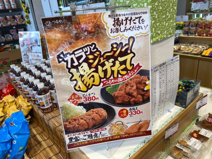 お弁当もさることながら、とにかくお惣菜の品数が豊富なのが特徴だ。いま気づいたけど私、『つるや』でお弁当を買ったことがないかもしれない。イカ唐やら焼き鳥をガサッと買い込み、車内で食べながら岡山市内を目指すのが鳥取県民流。