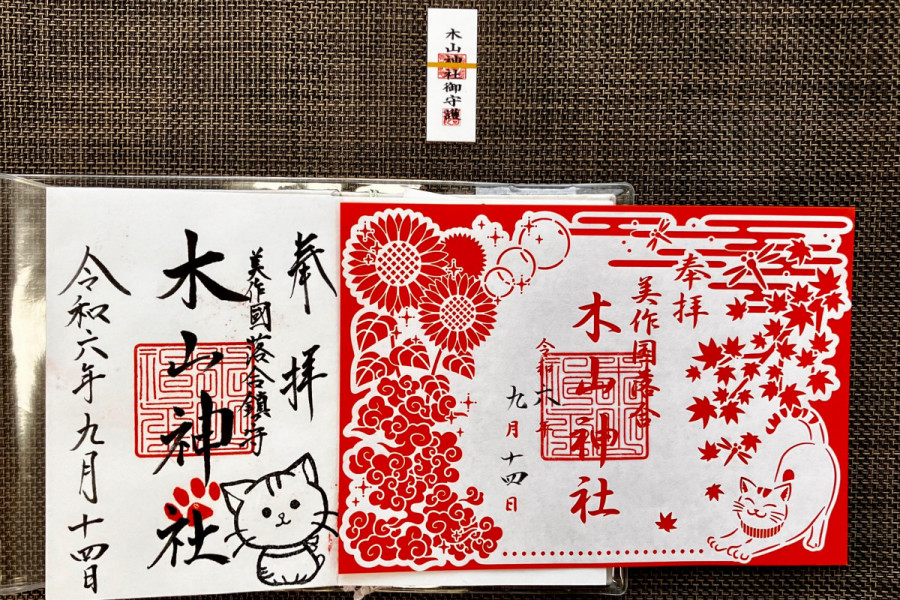猫好きにはたまらない可愛らしさ!「木山神社」のリアル招き猫として知られる「テンちゃん」がデザインされています。細やかな切り絵細工の御朱印は季節限定ですが、通常の御朱印にもテンちゃんのスタンプが押印されており、どちらも欲しくなってしまいますね!(私は両方いただいてきました)