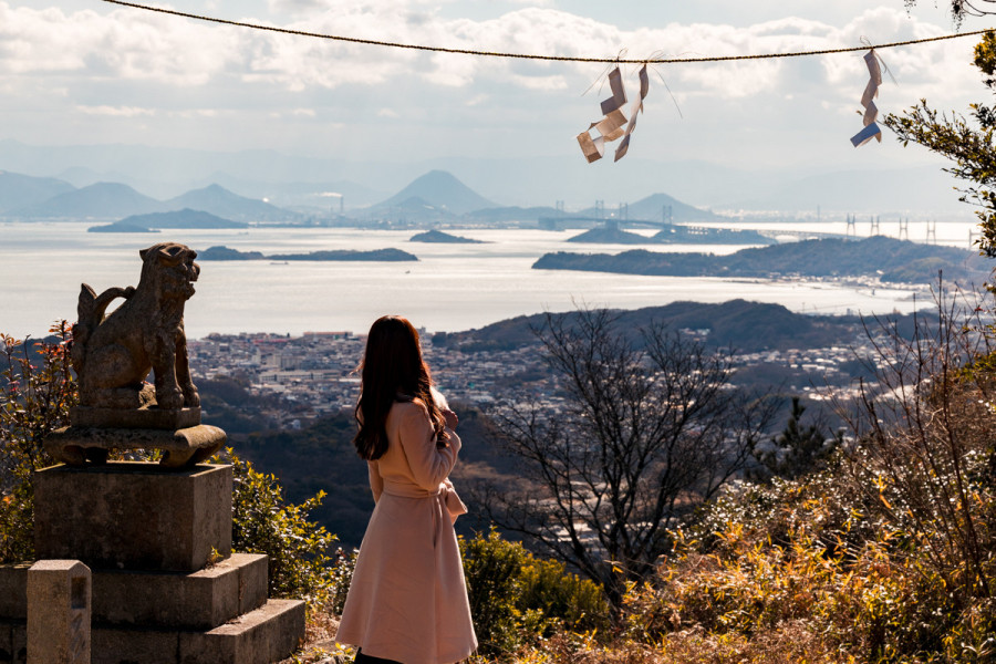 木華佐久耶比咩神社の本宮は、拝殿から山を登った先にあります。なかなかの登山になりますが、そのぶん、たどり着いた先に広がる光景は格別!瀬戸大橋と瀬戸内海を一望でき、心まで晴れわたります。まさに“神域”と呼ぶにふさわしい、静けさと澄んだ空気が漂っていました。