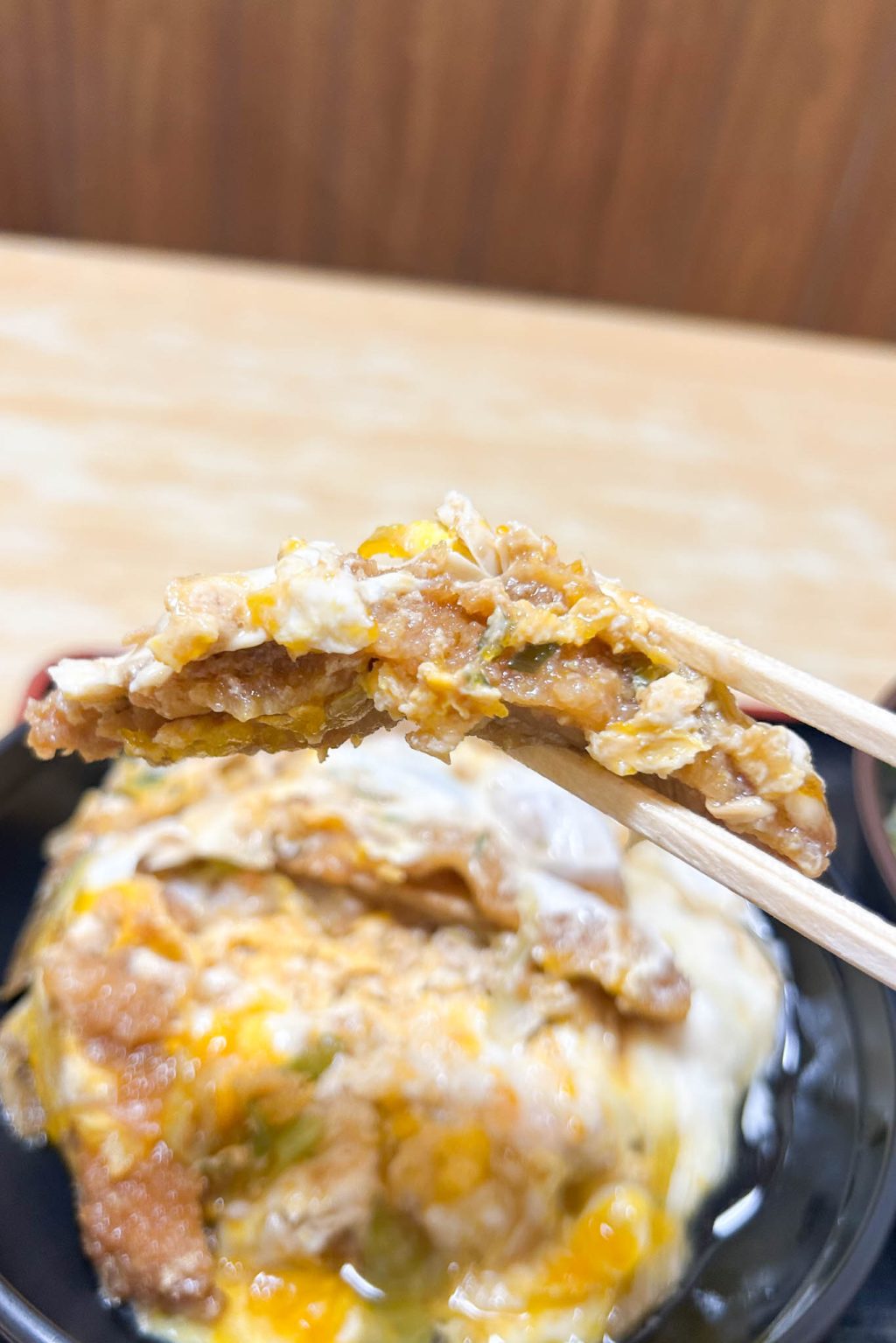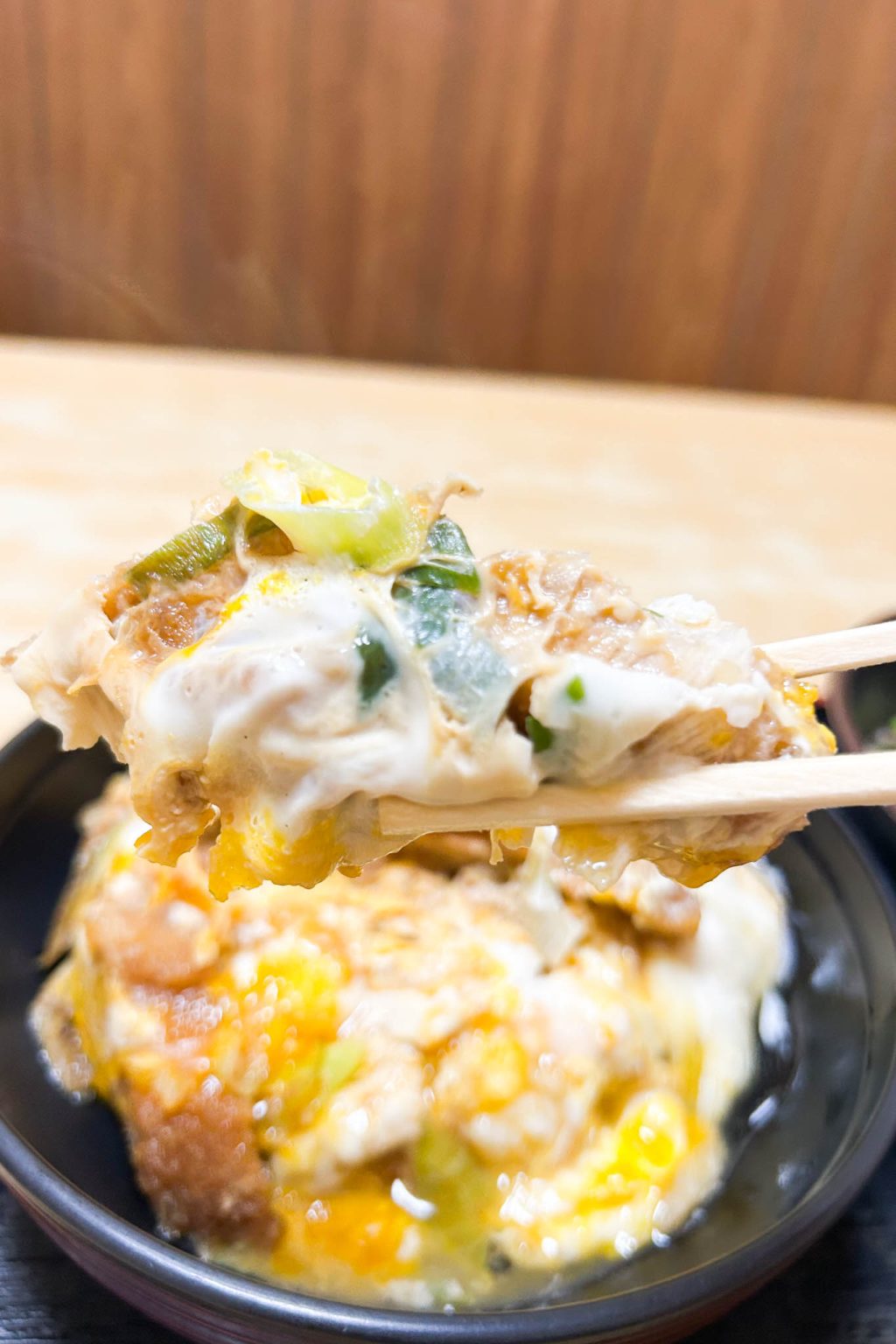 サクサクの衣にジューシーなお肉、さらにいい感じの半熟卵が加わって、箸が止まりません。