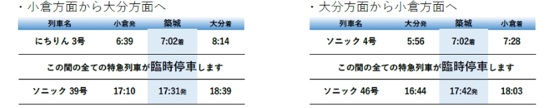 アクセスに関して、JR九州が航空祭に合わせて臨時列車の運転や特急列車の臨時停車を発表しています。臨時特急列車が4本運転されるほか、多くの特急列車が最寄りの築城駅に臨時停車、臨時普通列車「築城基地航空祭号」も45本運転される計画です。詳細はJR九州のホームページなどで確認することをおすすめします。