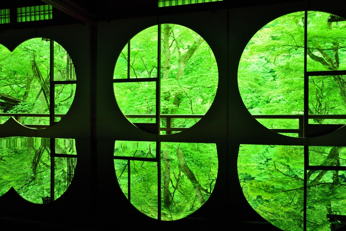 春夏秋冬において絶景が楽しめる築150年の日本建築です。フォトジェニックな丸窓や自然によって異なる庭の風情など、美しい景色の中で心地よくゆるやかな時間を過ごせます。