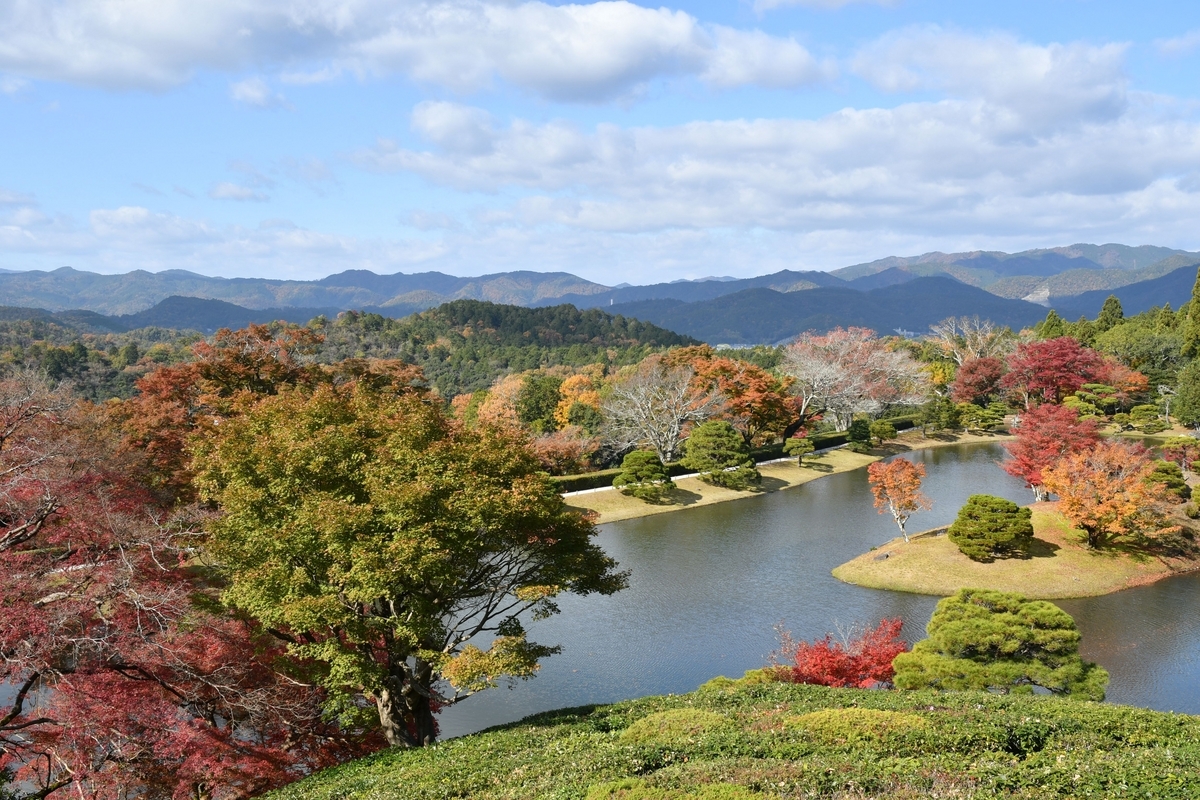 明治27年(1894)〜29年(1896)に造営された、政治家・山縣有朋の別荘です。庭造りにも造詣が深かった山縣の意向で、日本庭園でありながらも、当時には珍しい試みが随所になされ、近代日本庭園の傑作と言われています。国名勝。