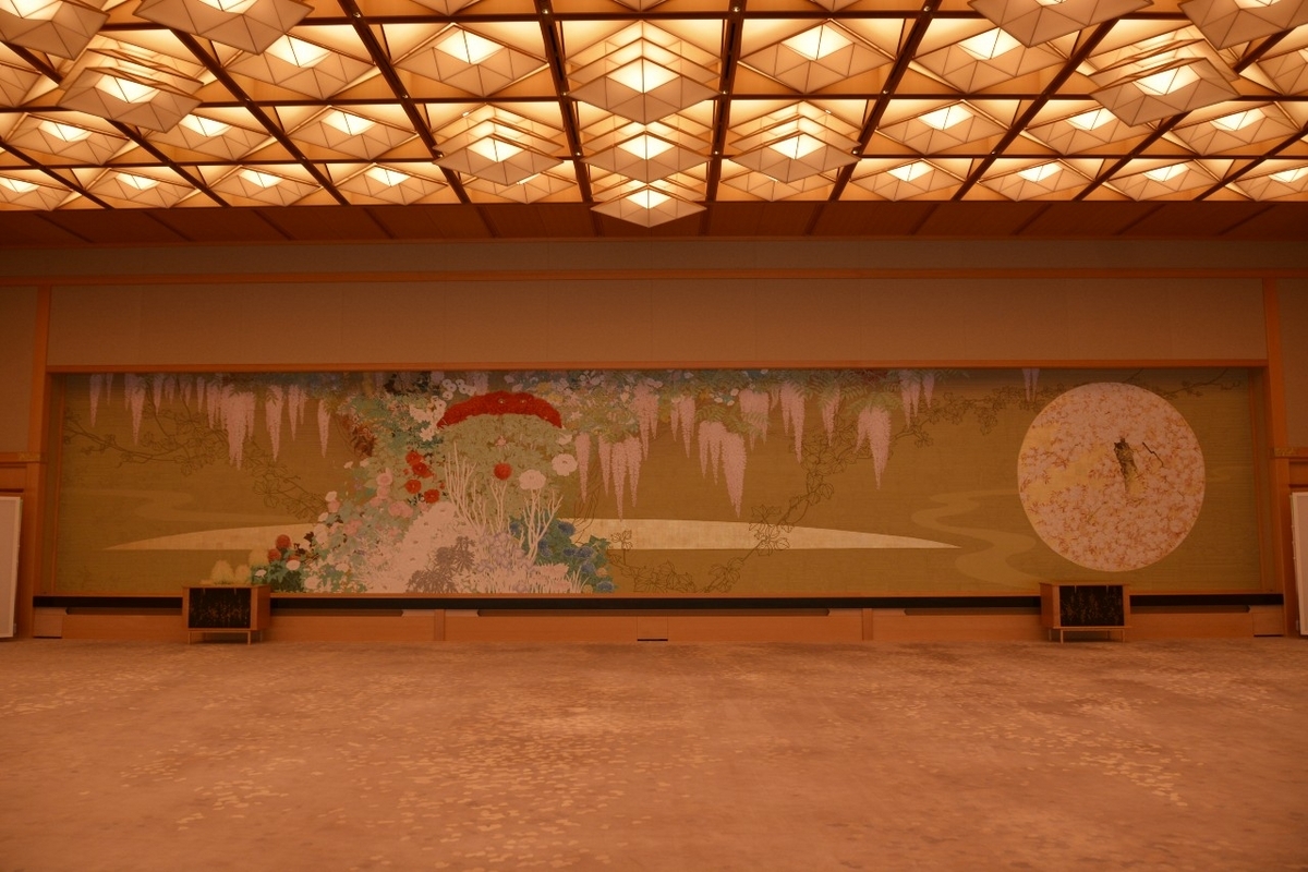 京都迎賓館は京都御苑内にある国の迎賓施設で、海外からの賓客を心を込めてお迎えし、日本への理解と友好を深めてもらうために、平成17年に開館しました。日本の伝統的技能の粋を集めて作られた空間は、華やかでありながらも品格ある和の佇まいを創出しています。