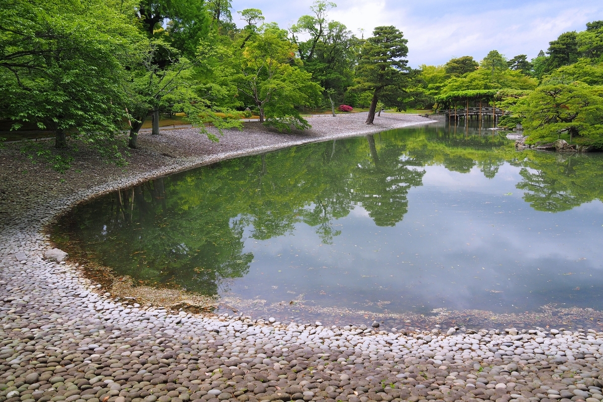 桂離宮は、江戸時代初期、皇族八条宮家の別荘として造られました。大きな池を中心とした庭園は日本庭園の最高傑作との呼び声も高く、園路を進むごとに息をのむような絶景が広がります。