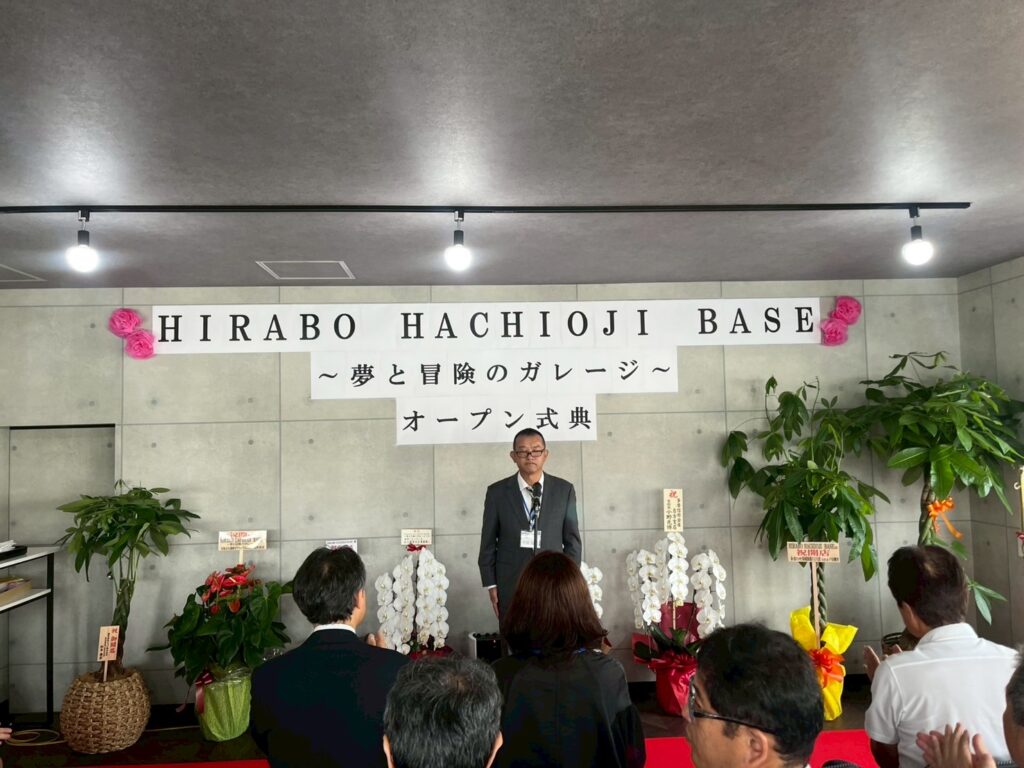 式典の冒頭、平野オートボディ代表取締役の平野と智巳氏は「板金塗装からスタートして25年。皆さまのおかげでここまで来られた」と感謝を述べました。コロナ禍に始めたキャンピングカー事業を本格化させ、今回の八王子ベースでは「車を通じて夢と冒険を叶える」場をつくりたいとの思いを語りました。