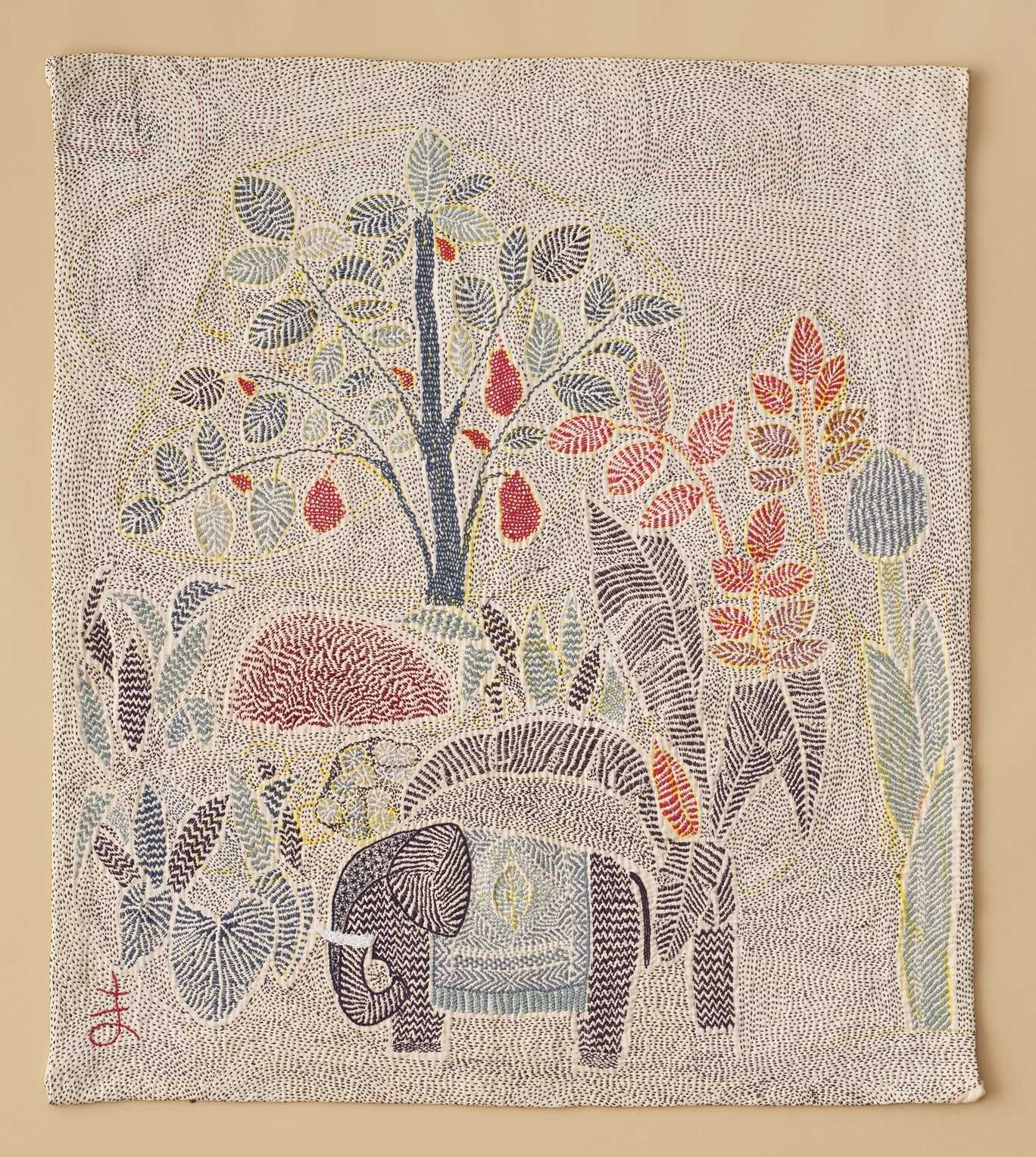 日本の伝統的刺繍技法を継承する平野利太郎(1904~1994)。定型のステッチを使わず、絵の具を載せるように毛糸を刺し重ねて風景や事物を描いた尾上雅野(1921~2002) 。糸やビーズなど多彩な材料を用いてモチーフを写実的に表現する岡田美佳(1969〜)。具体的な図像をつくるのではなく、自身と向き合いながらひたすら糸を針で刺し続ける伏木庸平(1985〜)。ベンガル地方に伝わる布・カンタを研究した望月真理(1926〜2023)。本展ではこの5名にスポットを当て、新作を含む100点以上を紹介する。自身を解放するとともに、他者への理解を深めるすべともなりうる「刺繍」という仕事の多様な形に出合うことができる。