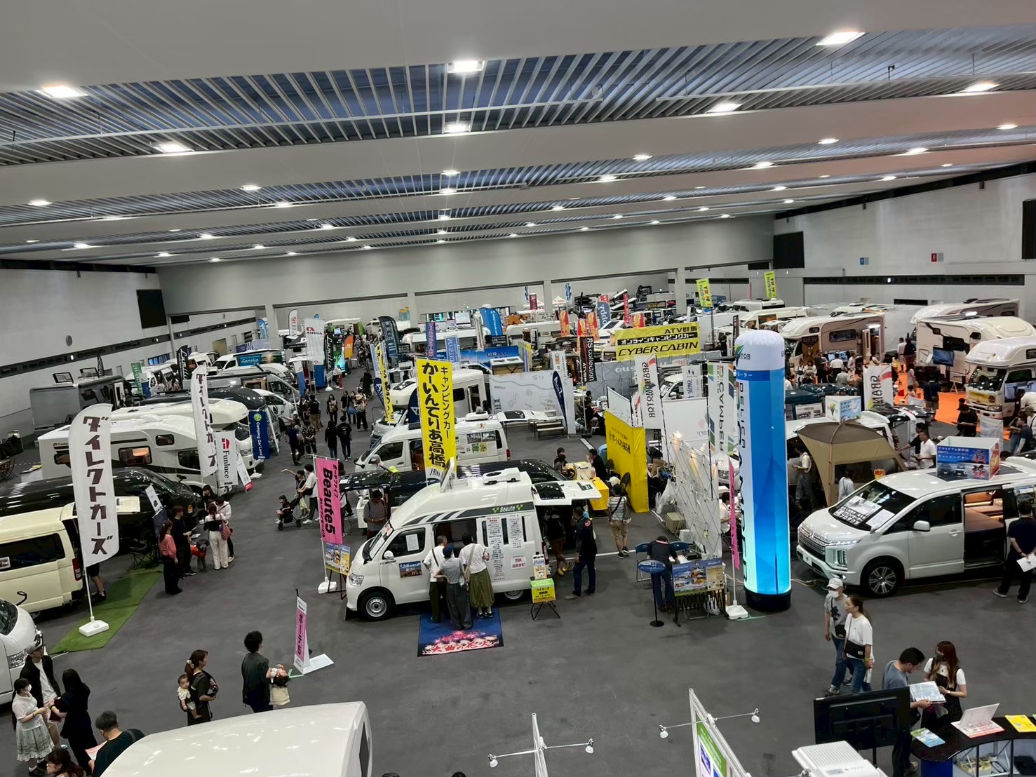 西日本最大級クラスのスケールで、国産・輸入のキャンピングカーが約200台集結します。実車体験と商談に最適、用品やカスタム相談も可能です。