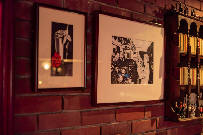 初代「サヴォイ」から受け継いだカウンター上のランプや、師匠の小林さんを描いた切り絵、小林さんの奥様が好きだったというフランスのブリュットを生み出したマダム・ポメリーが描かれたポスターなど、インテリアの一つひとつに物語があるのも魅力的です。