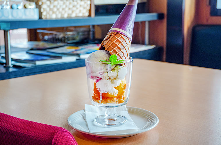 朝来市和田山町にある「あいす工房 らいらっく」から仕入れた約10種類のジェラートは、ジェラート専門店顔負けのバリエーションとおいしさで人気を集めています。