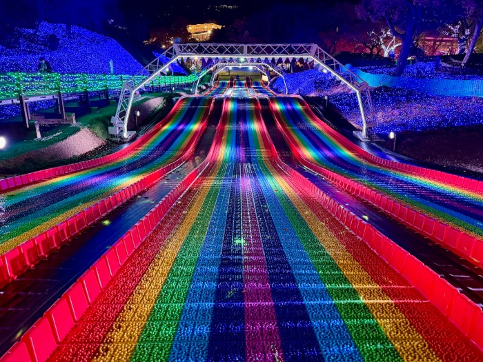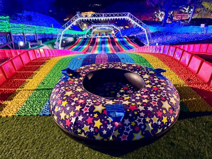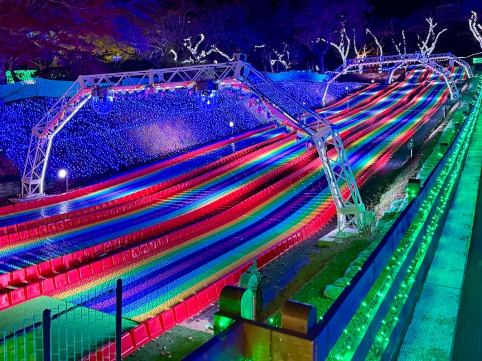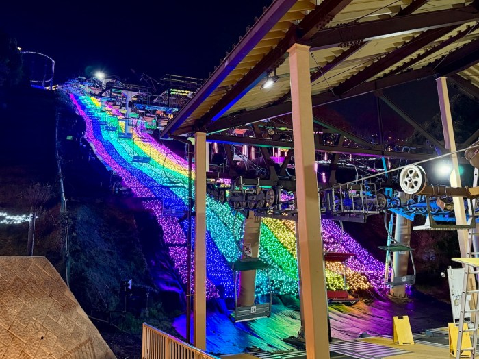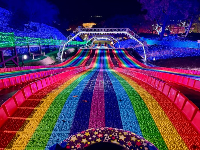 こちらは今夏オープンしたばかりのアトラクションで、鮮やかに光るレーンを一気に滑り降りる爽快感がヤバいらしい。って、こういうのを待ってました!
