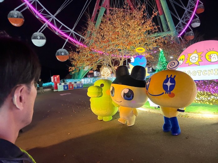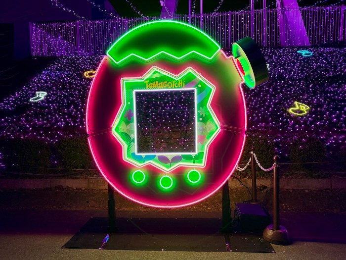 オッサンとの相性はさておき、キャラクターたちは可愛い。たまごっちデバイスの中に入ったような写真が撮れるフォトスポットもあるのでファンなら嬉しいだろう。