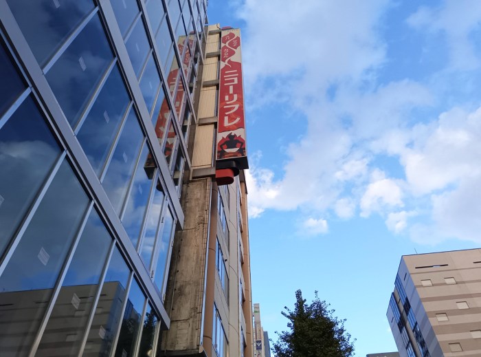 南3条を歩いていくと、遠くからでも見えるくらい目立っているニコーリフレの看板。実は近所の札幌ベッシーホールでライブした時にこの看板だけは見たんだけど、なにせライブ前だからととのってる時間がなく諦めたことがあった。万感の初来訪である。