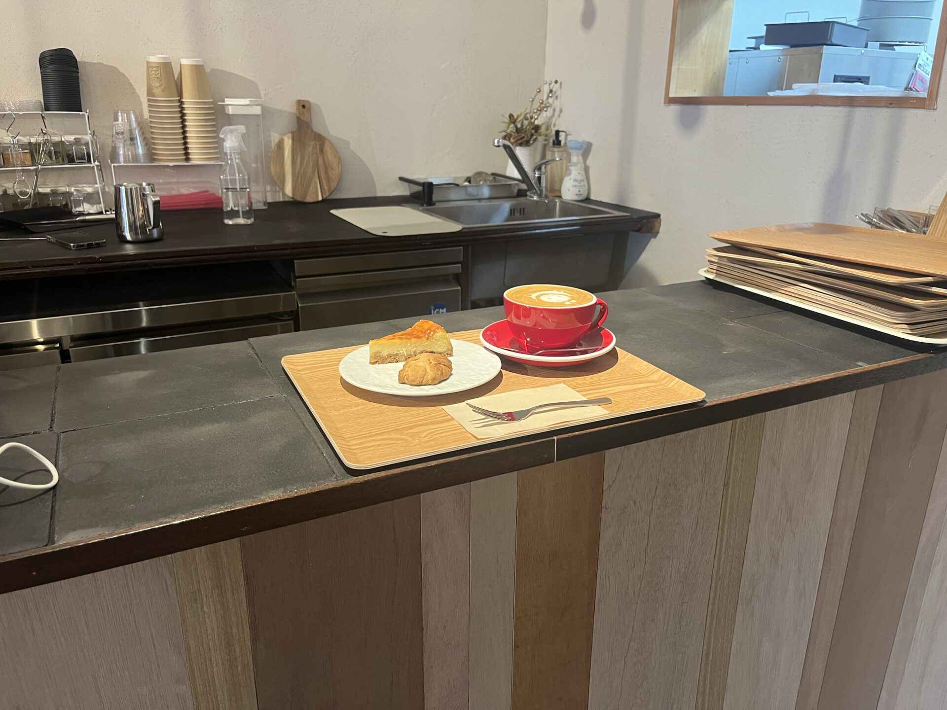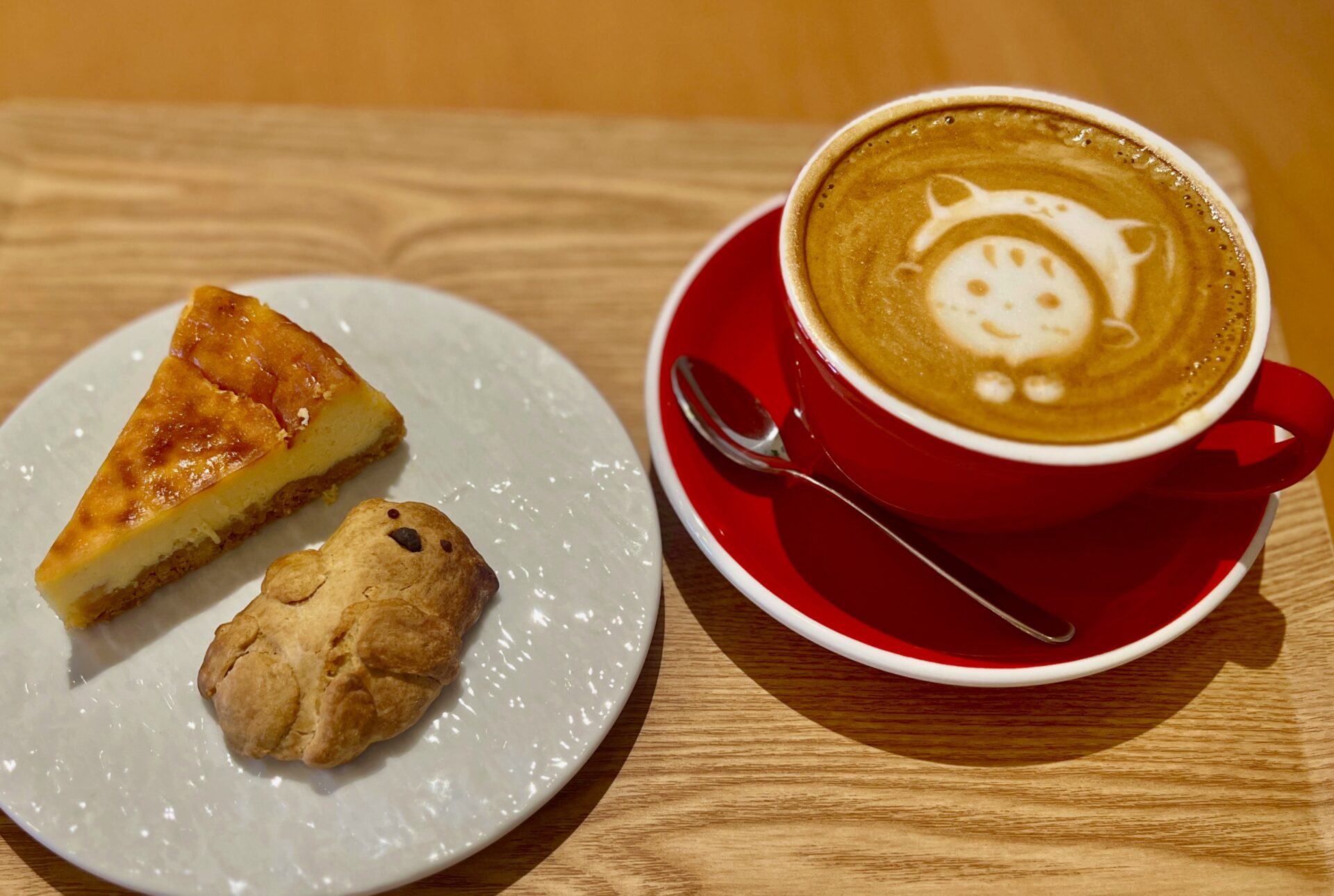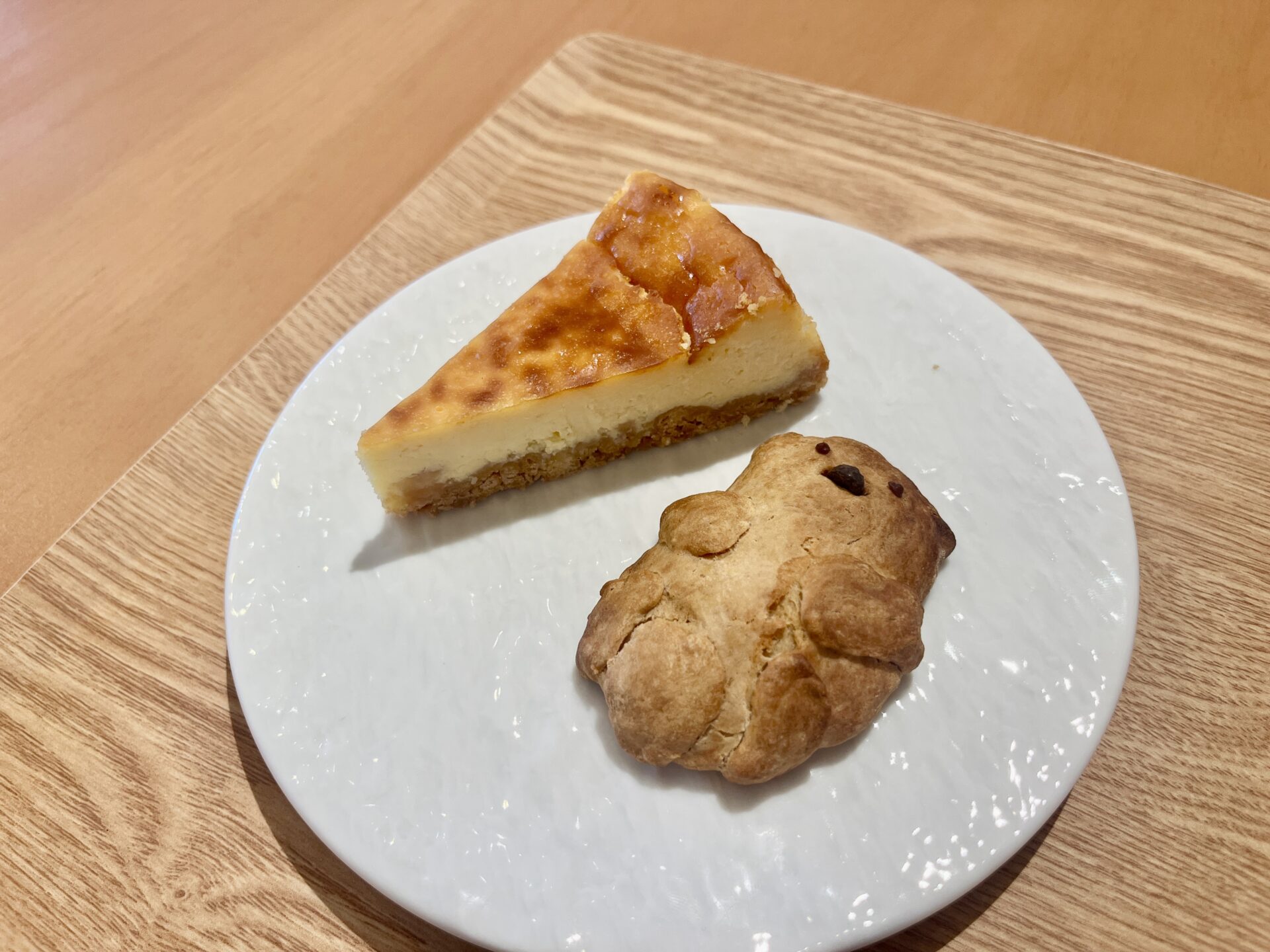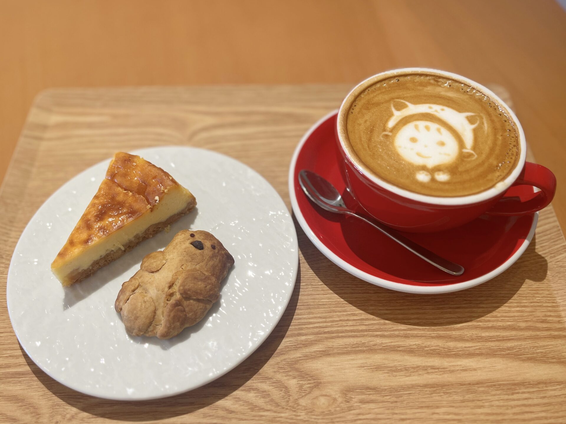 この日は、チーズケーキ・らっこーん(黒糖入りスコーン)・カフェラテ(ホット)をいただきました。