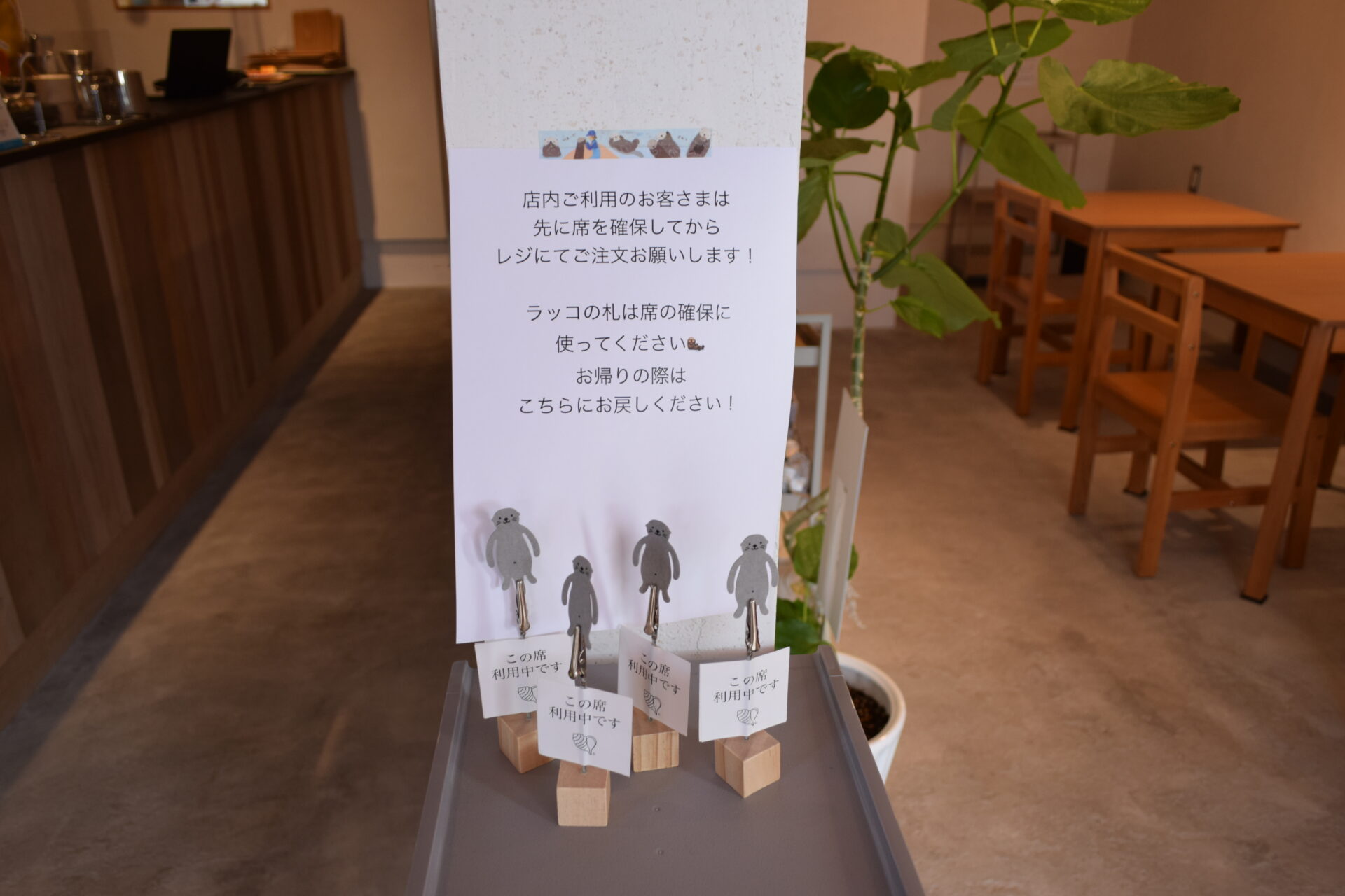 ラッコの席札を取って、座りたい席に置いておきます。