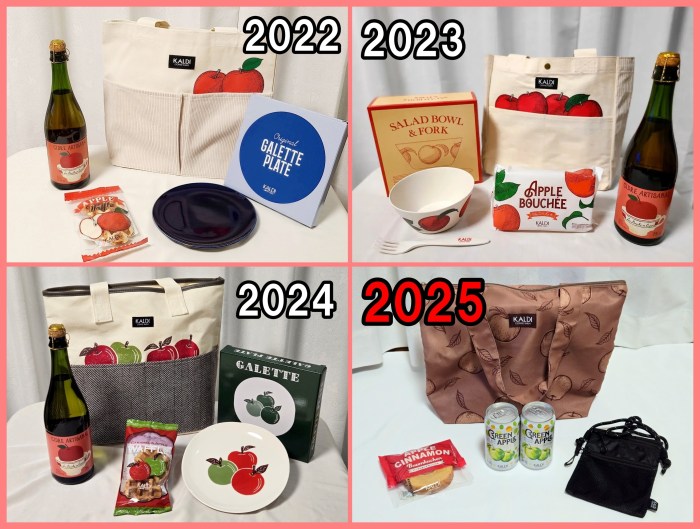 ここ3年ほど毎年買っているんだけど、りんごバッグの強みって「安定感」だったんだよね。内容が変わらないからこそ良い……! みたいな。