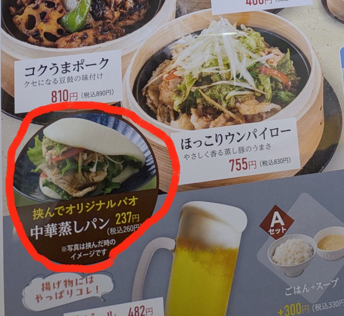 そのほか、ヨソにないメニューに「中華蒸しパン」がある。具材を挟んでオリジナルパオにするのも良さそうだ。