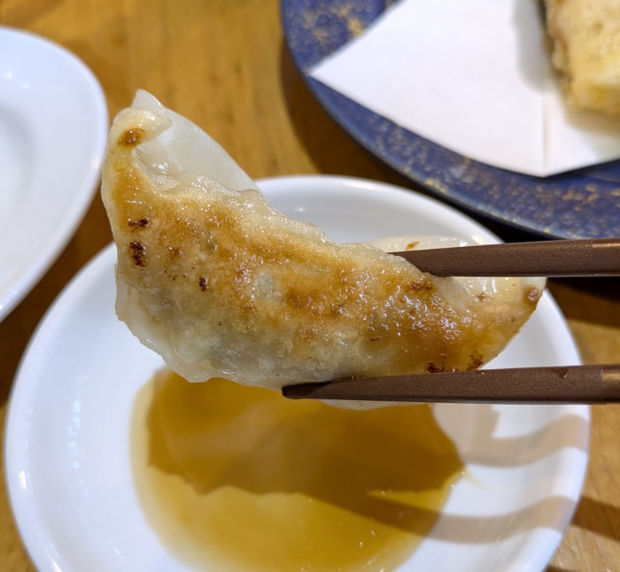 とりあえず「元祖餃子」(税込300円)から頂くとしよう。大阪王将の餃子は久しぶりに食べるけど、少し小さい気がするのは気のせいかな? 私がよく利用するお店のものが、たまたま少し大きいのかもな。