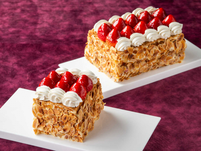 また『旧ムーア邸』では銀座の老舗フランス料理店『銀座マキシム・ド・パリ』の「苺のミルフィーユ」を販売していますが、12月20日から25日限定でこちらが”クリスマス仕様”になるとのこと。