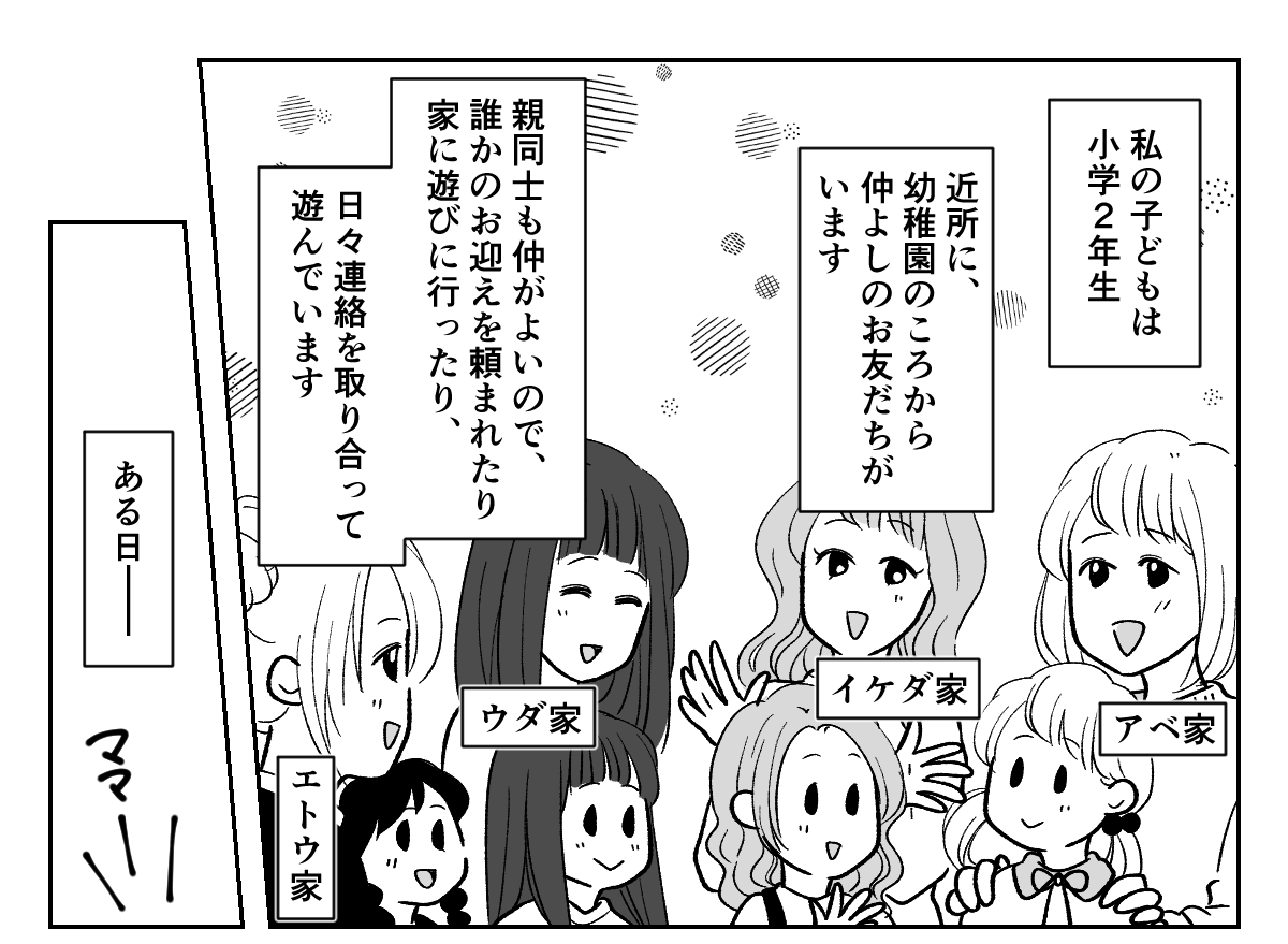小学校高学年のころを思い返してみると、お友だちと約束をして、親がいなくても自由に遊んでいました。それでも、親同士は知り合いだったと思います。いま私の子どもは小学2年生。さいわいにも幼稚園からの4人組で、私たち保護者も仲よくやっています。でも、子どもたちだけで遊ぶのはまだ早いと思っているので、遊ぶときには必ず誰か保護者がいます。他のお友だちと遊ぶときも同じだと思っていたのですが……。