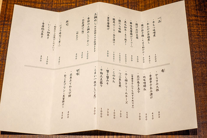 その他、「つぶ貝のうま煮」や「ホタルイカの酢味噌がけ」など、海鮮を中心としたメニュー内容です。