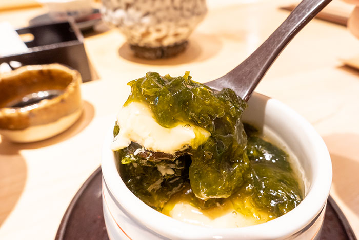 続いては「蒸し物」!この日は『あおさのあんかけ茶碗蒸し』でした。たっぷりのあおさの磯の香りを楽しみながら茶碗蒸しがいただける上品な逸品です。