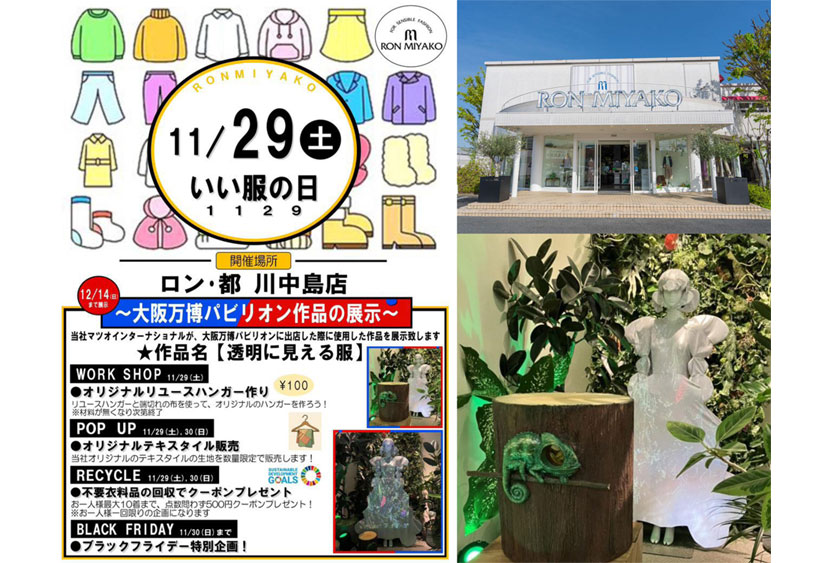 11/29(土)『いい服の日』大阪万博パビリオン作品「透明に見える服」特別展示!大型ファッション店のブラックフライデー特別企画も同時開催「ロン・都」@長野県長野市