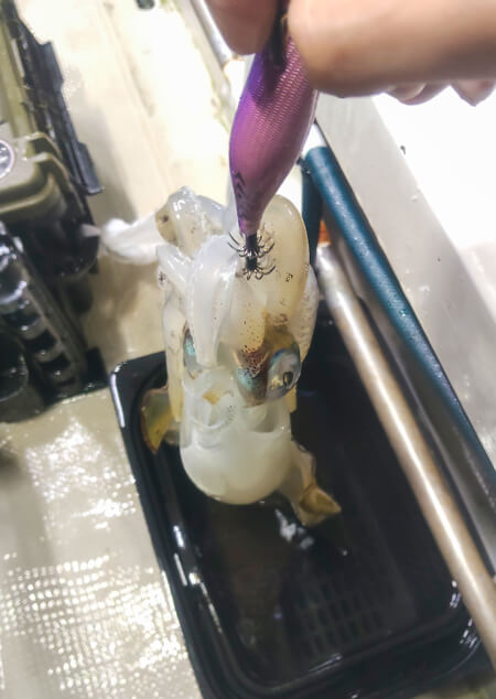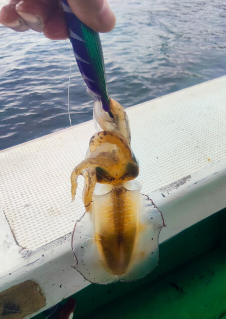 ガッチリと足の根本で掛かっていることもあれば、ゲソ1本ギリギリで上がってくることもあります。海底から上がってくるまではどんな状況か分からないので、ドキドキしながらのアオリイカとのやり取りは最高で、中毒性のある楽しさがあると感じました。