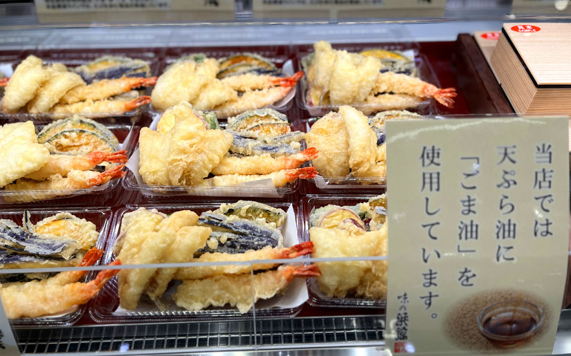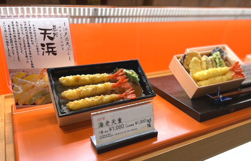 「築地魚弁」の魚料理を提供している「味の浜藤」に、新たに江戸前天ぷら店「築地天浜」がオープン。「築地天浜」は、ごま油で揚げる江戸前天ぷらが看板。「海老天重」やてんぷら盛り合わせも並びます。