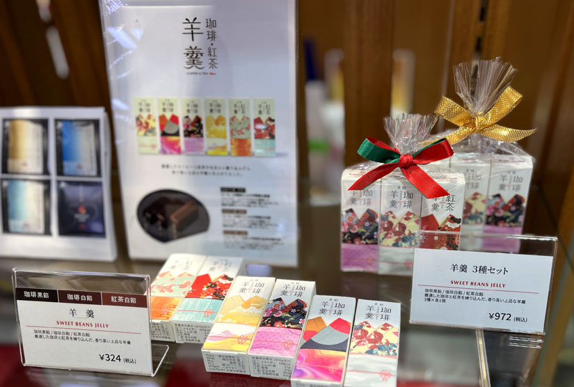 贈り物にも喜ばれそうなおしゃれなティーパックや、ひとくち羊羹などもそろいます。