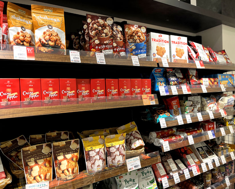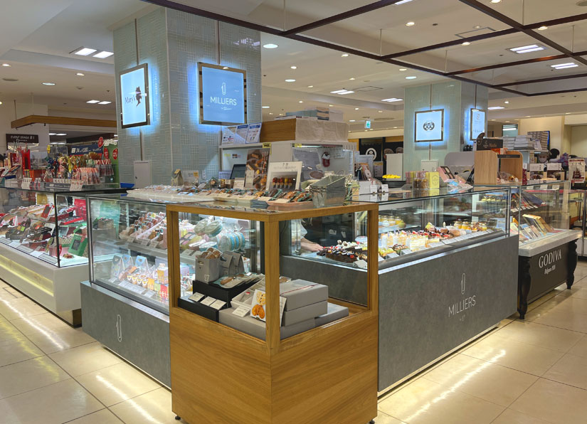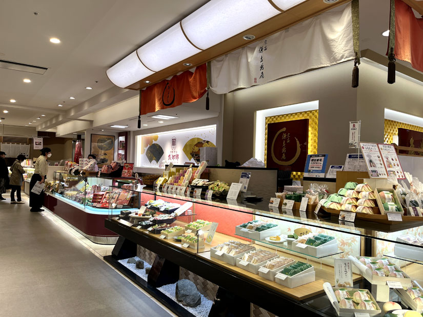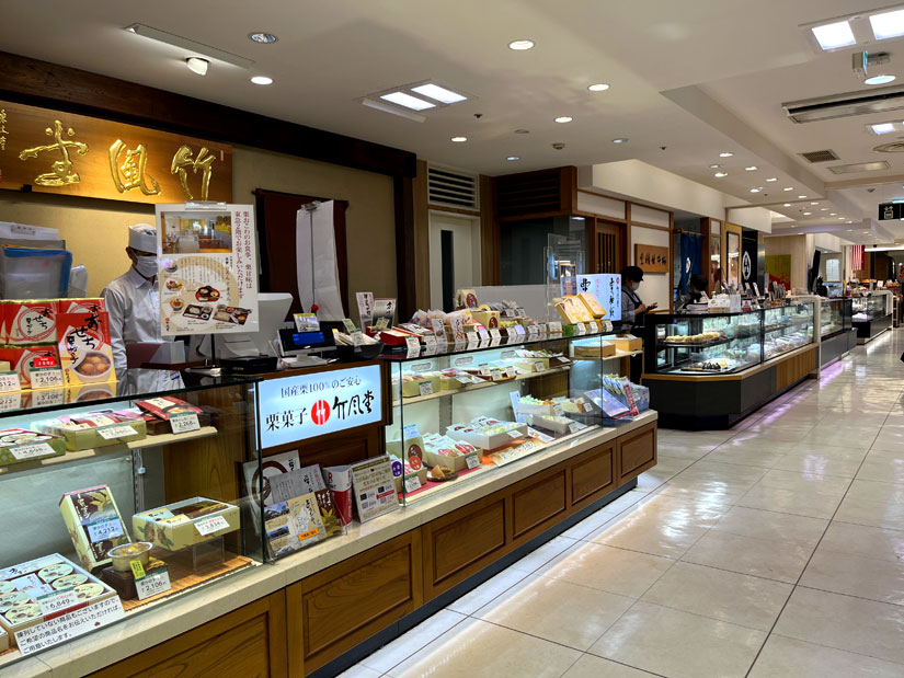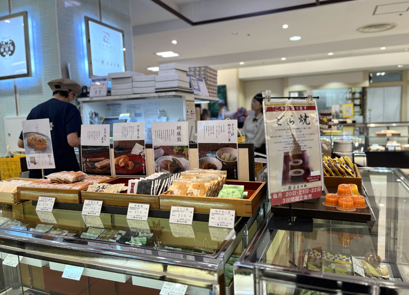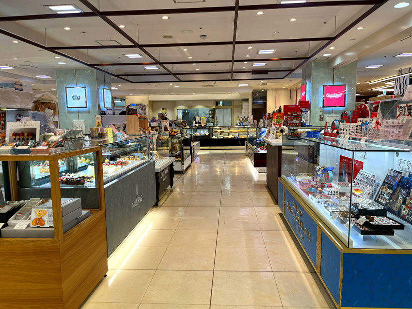 洋菓子・お菓子メーカーが並ぶエリア。さまざまなメーカーのお菓子が並ぶ売場には、日限定の人気銘菓もあります。「笹屋伊織」はこちらのエリアに。