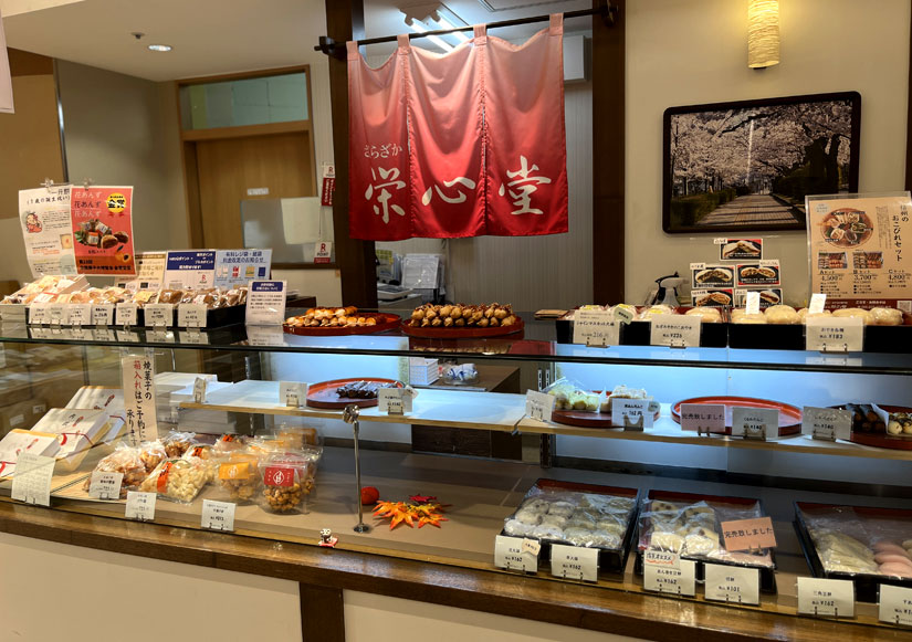 ①そば揚げ団子が人気の「さくらざか栄心堂」は和菓子店売場へ