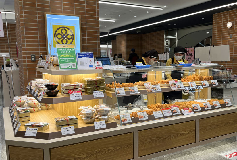 「鶏福」やきとりに加え、手羽や山賊焼きも販売。とんかつが人気の「まい泉」では揚げ物とお弁当を販売。