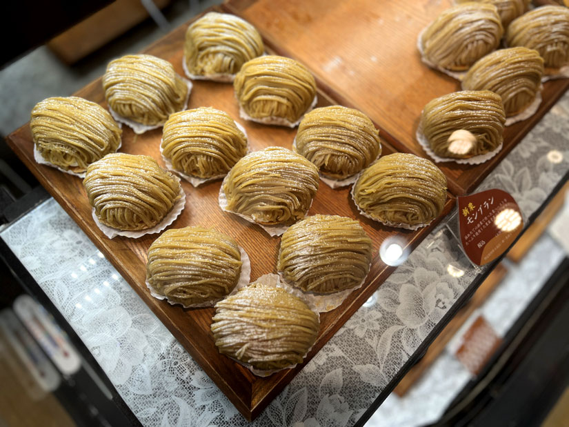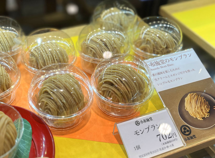 小布施の栗菓子店「竹風堂」「桜井甘精堂」「小布施堂」が並ぶエリア。モンブラン食べ比べも楽しめます。※画像上は「竹風堂」の新栗モンブラン
