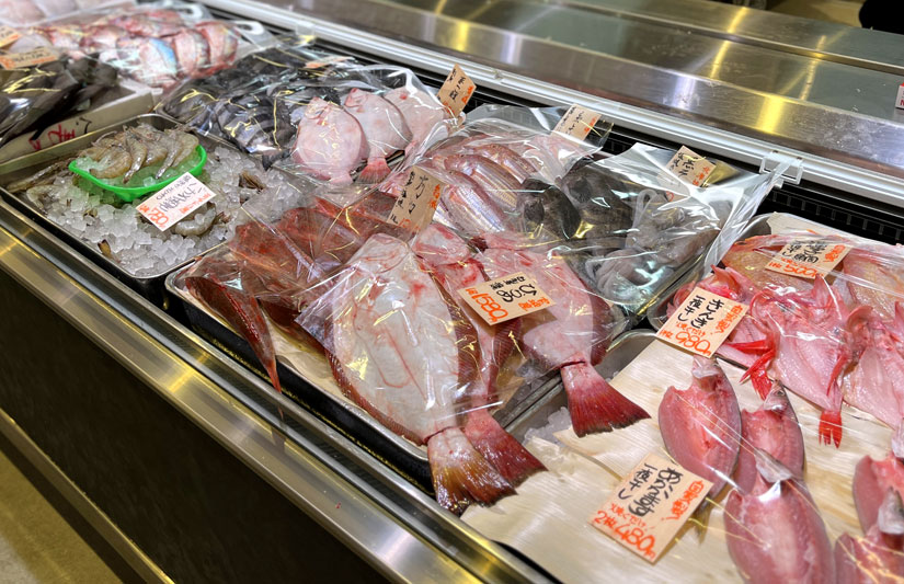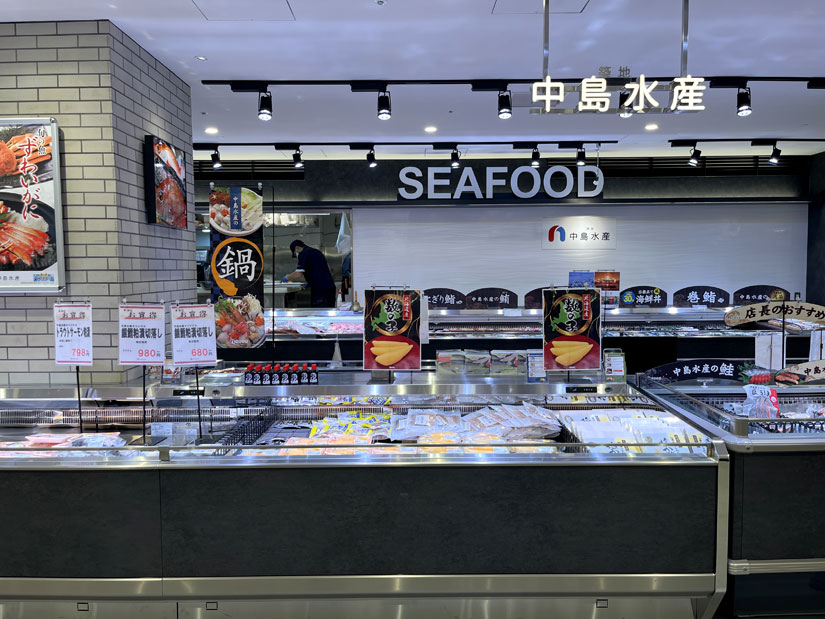 店舗面積を拡大してリニューアルした「中島水産」。豊洲直送便に加え、北海道から九州まで各地の漁港や市場の目利きバイヤーが厳選した鮮魚を取り扱います。