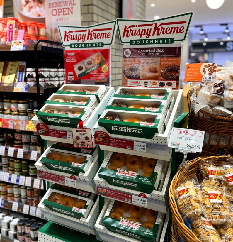 〈クリスピー クリームドーナツ〉コーナー。時期により期間限定商品も並びます。
